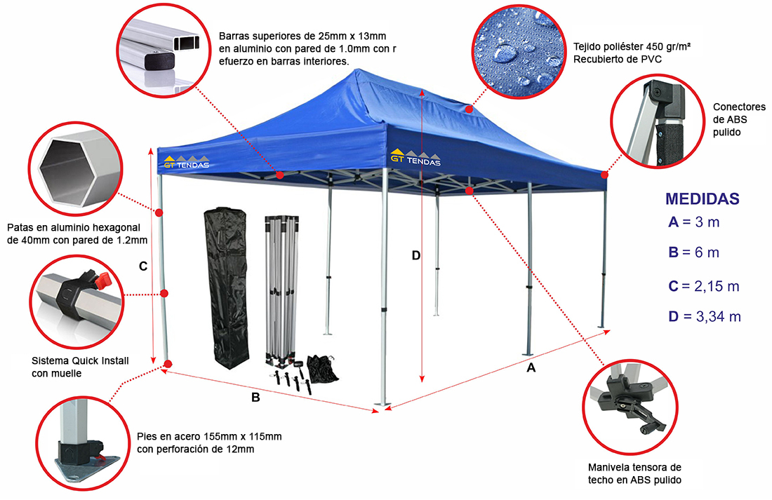 - x4 paredes laterales (1 c/ puerta con cremallera)